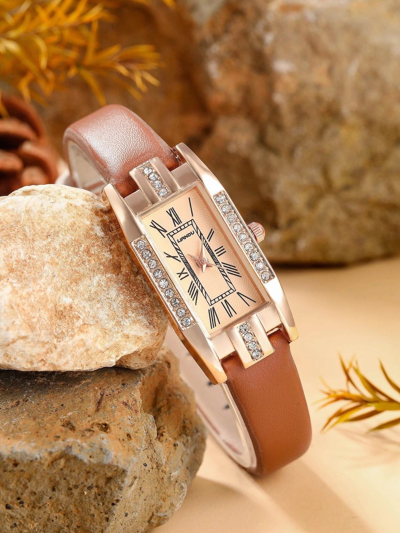With its one-size design, this watch is perfect for women of all wrist sizes. The quartz movement guarantees accurate timekeeping, so you'll always be on schedule. Whether you're attending a formal event or heading to the office, this watch is sure to complement any outfit. The brown color adds warmth and elegance, making it a versatile accessory that can be worn with casual or formal attire.
