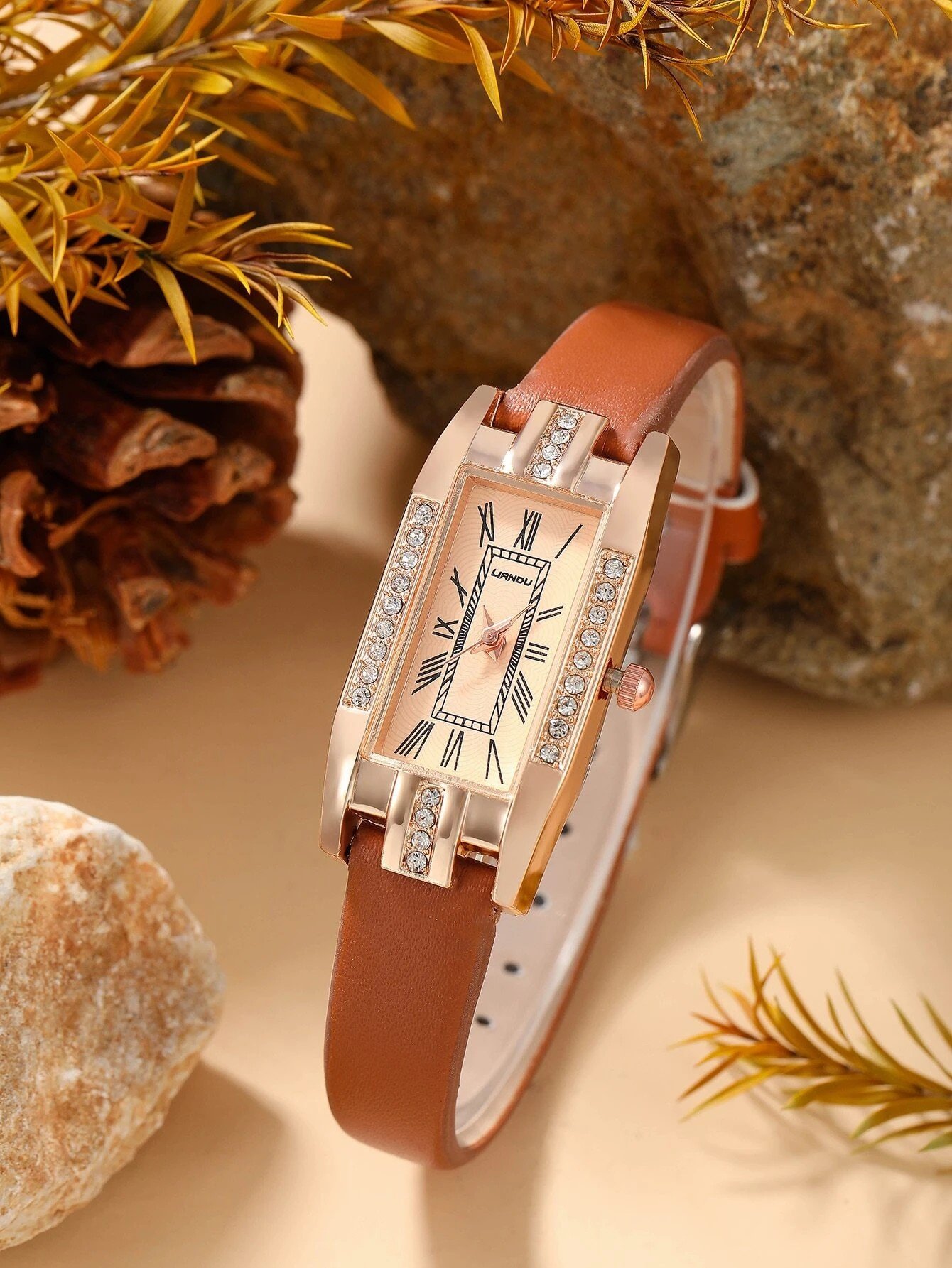 Invest in a timepiece that exudes timeless beauty and functionality. Purchase this Women's Zinc Alloy, PU Leather, Glass Rhinestone Decor Rectangle Quartz Watch in brown and elevate your style game. With its high-quality materials and eye-catching design, this watch is a must-have for any fashion-conscious woman. Don't miss out on the opportunity to add a touch of glamour to your daily life.