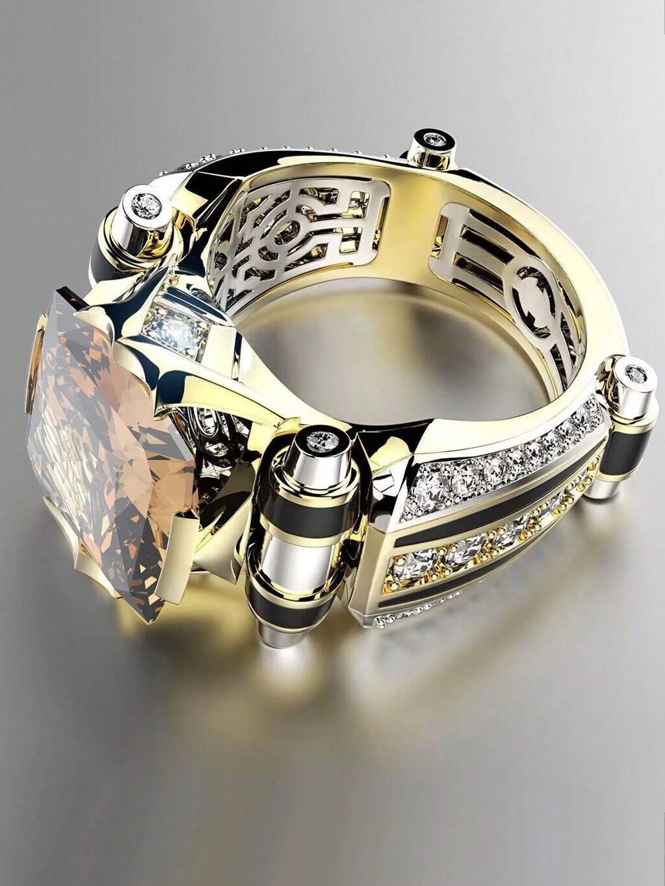 Invest in this Mens Copper Rhinestone Punk Hip Pop Ring in gold and black and add a touch of style and sophistication to your accessory collection. Its high-quality material and exquisite detailing make it a valuable and versatile addition to any man's wardrobe. Don't miss out on the opportunity to elevate your fashion game with this unique and trendy ring.