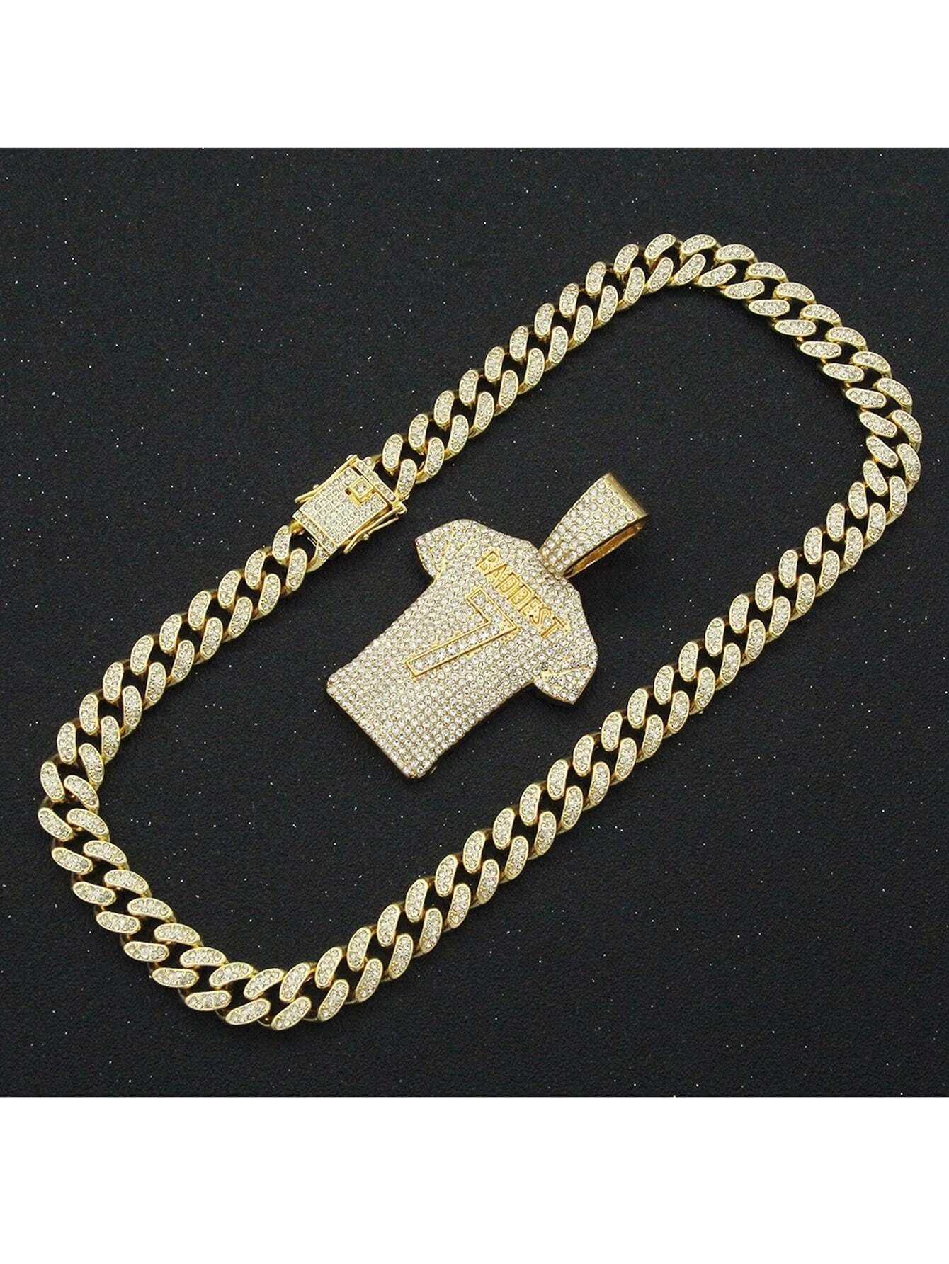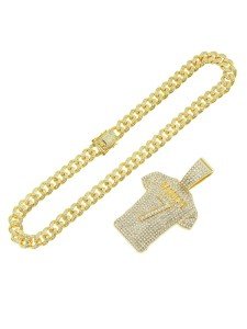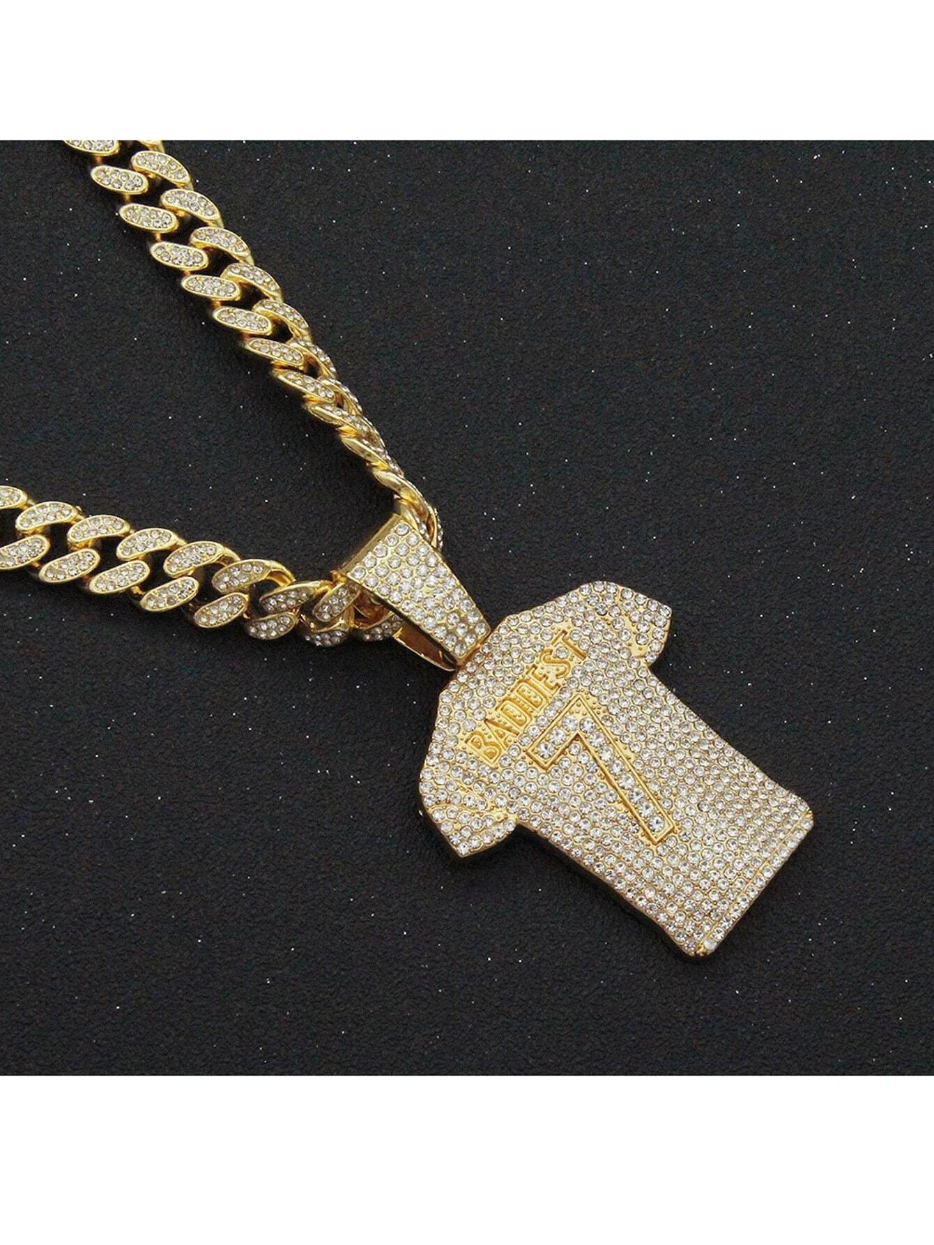 Add a touch of bling to your wardrobe with our Rhinestone Shirt Pendant Necklace. This piece is not only stylish but also durable, ensuring that it will last for years to come. Whether you're heading to a party or just want to add some flair to your everyday look, this necklace is the perfect choice. Embrace your inner diva and step out with confidence with this eye-catching accessory.