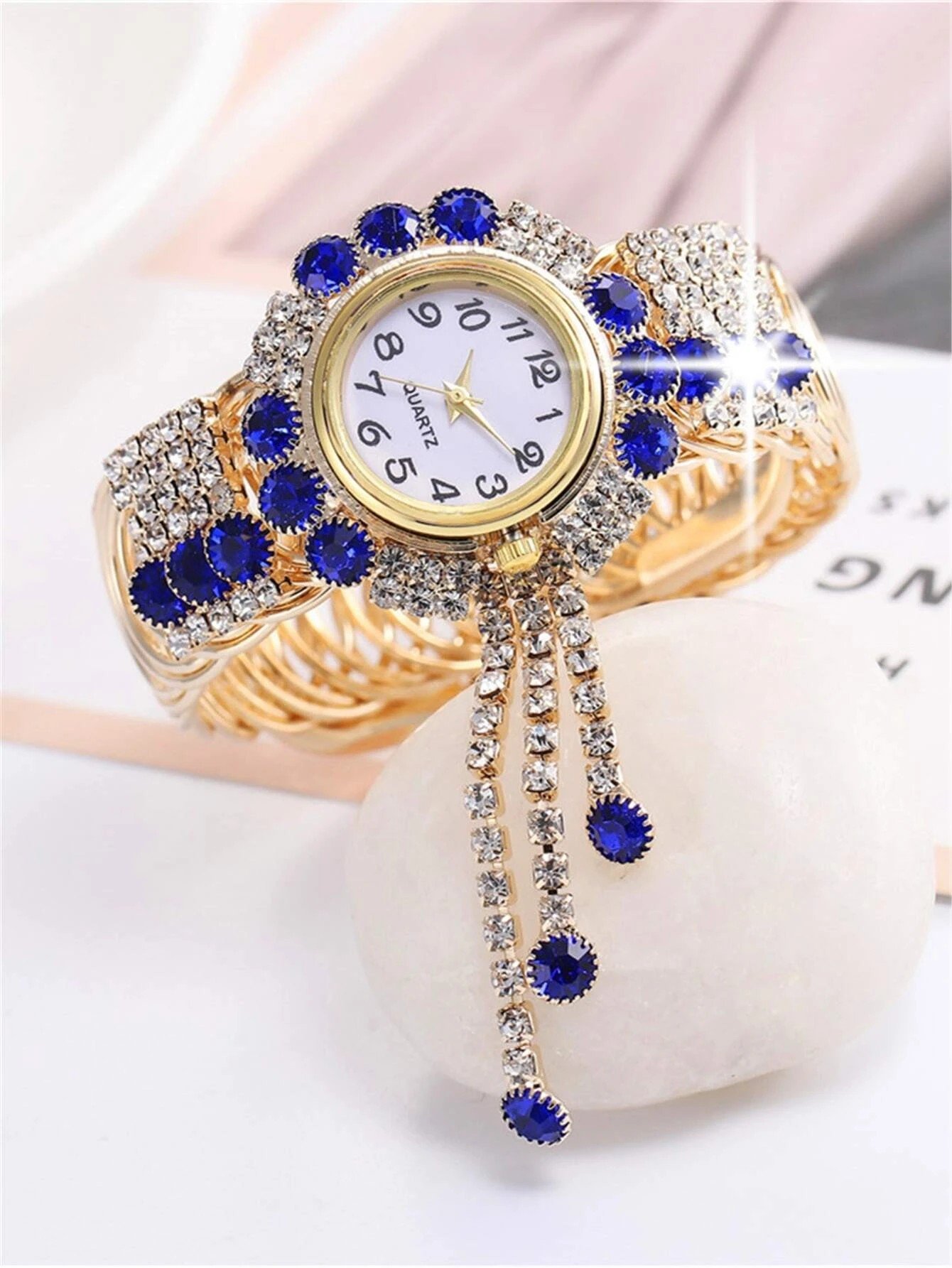 Are you looking for a stylish and sophisticated watch that will add a touch of elegance to your outfit? Look no further than the Womens Zinc Alloy, Glass Rhinestone Tassel Decor Quartz Watch. This watch is designed specifically for women, with its delicate details and beautiful blue color that will surely catch everyone's attention.