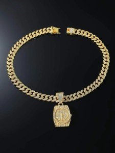 Gender-neutral and fashionable, this pendant is a must-have accessory. The attention to detail is impeccable, with the rhinestones carefully placed for maximum sparkle. The hip hop vibe adds a modern twist and makes this pendant a statement piece that will make your style stand out from the crowd. Don't miss out on this unique and stylish necklace that combines elegance, versatility, and a touch of hip hop flair.