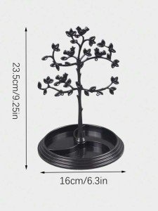 Upgrade your jewelry storage with this elegant Tree & Bird Jewelry Stand. Crafted from high-quality plastic, this stand is not only durable but also lightweight, making it easy to move around and reposition whenever you want. The black color adds a touch of sophistication to any space, effortlessly blending in with any décor style.