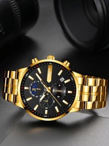 Introducing the Mens Triple Dial Date Quartz Watch! Designed exclusively for men, this watch combines style and functionality effortlessly. With its triple dial feature, you can keep track of the day, date, and time all at once, ensuring that you never miss an important appointment or deadline again. The quartz movement guarantees accurate timekeeping, making this watch a reliable companion for any occasion.