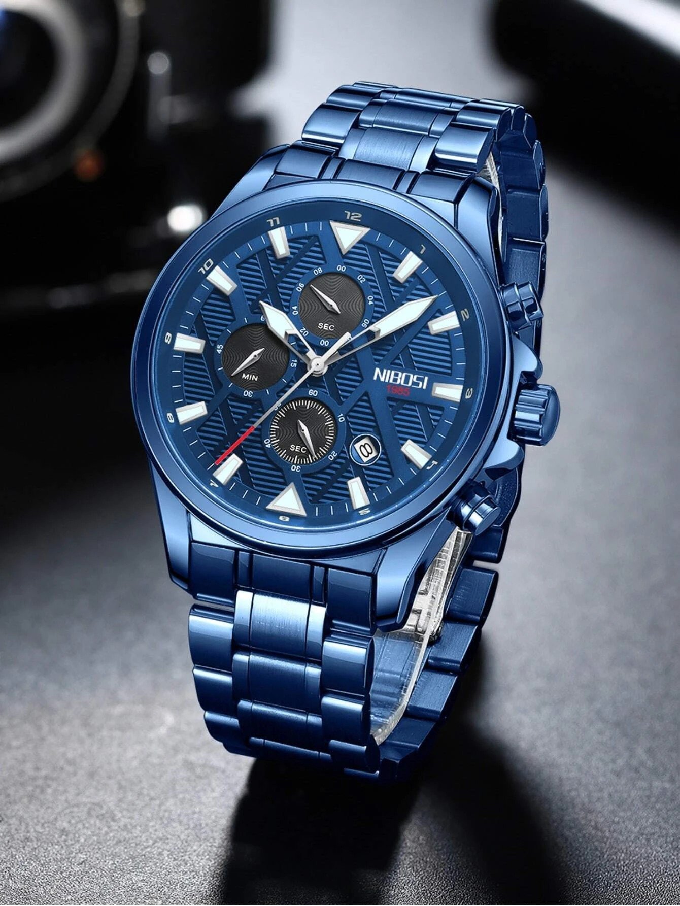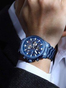 With its sleek blue color and classic design, this watch is the perfect accessory for any outfit. Whether you're heading to the office or going out for a night on the town, this watch will add a touch of sophistication to your look.